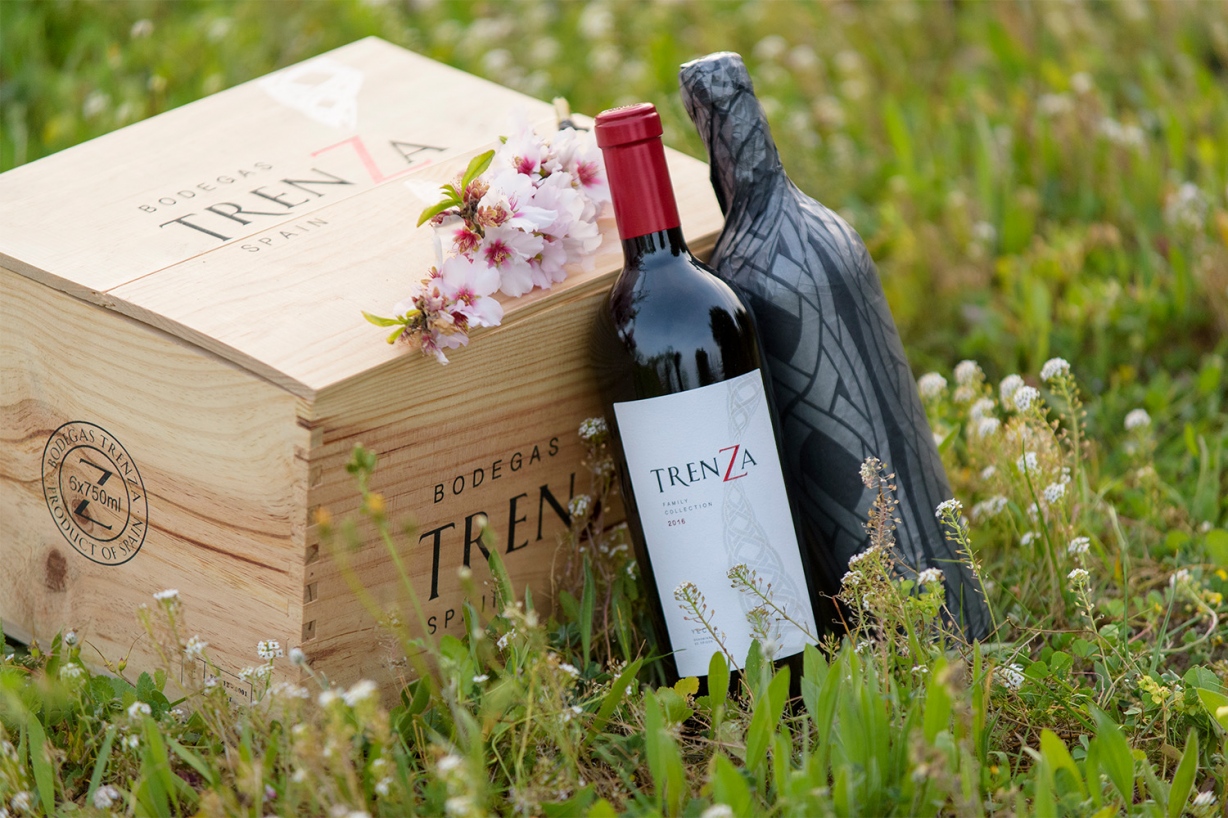 2020 Trenza Family Collection was release in Summer 2023. Sporting a more classic style the label is a thick cotton white paper (120g/m2) There is a discrete use of red stamping in order to draw attention to the Z that has become symbolic to our winery. The braided Trenza logo in the label is a combination of embossing with a gun-barrel gray shine. The standard packaging is a heavy conical bordeaux bottle weighing 1,72 kilograms. Each bottle is wrapped with black silk-paper with the braided Trenza logo in a slight grey tone. We have created a designer wooden box of 6 stamped with the complete Bodegas Trenza logo.